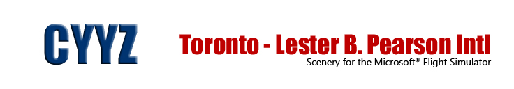 Our CYYZ, Toronto – Pearson International Airport scenery is the most current, detailed and complete rendition of this important facility for the Microsoft Flight Simulator. As usual, we offer it in two individually developed and formatted versions, one for FS2004 and another for FSX. The scenery includes detailed models of the two terminals in operation today. We also rendered the hotel located at terminal 3 and the people mover connecting the two terminals. The air traffic control tower and all maintenance, cargo and general aviation facilities are also included. As usual, we peeked a few months into the future and included terminal 1’s third pier currently under construction. Texturing of the most visible portions of all structures was matched as closely as possible to real life in order to convey the actual look and feel of the airport. Our texturing technique enables us to optimize the image resolution while minimizing the number of texture files needed thus optimizing the sceneries performance.
