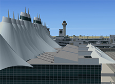 BluePrint Simulations’ Denver International airport scenery depicts the airport as it exists in the fall of 2013 and features highly detailed, full-3D models (BluePrint’s True3D) of the main terminal and three concourses including the ATC tower. It also includes all cargo, general aviation and maintenance facilities within the airport boundaries, all aircraft maintenance and storage hangars being fully three-dimensional and usable. All 3D models feature custom-made, high-resolution (32 px/meter) textures including transparency and reflection effects. The scenery also includes every gate available at each of the three concourses. Each gate is accurately numbered and equipped with a static jetway configured and branded to match current gate usage by every airline serving DIA. Each aircraft parking position is located as accurately as possible based on current satellite imagery of the airport and features realistic ramp markings, illumination effects and a basic parking alignment aid. A set of optional static service vehicles is also included for every gate. An advanced mapping file (AFCAD) enables realistic AI traffic operations. BluePrint’s KDEN scenery also depicts the runway and taxiway complex superimposed on a set of high-resolution, custom-made terrain textures positioned as accurately as it is possible in the flight simulator environment to match official FAA charts and publications. The terrain textures depict seasonal changes and are painstakingly blended with the surrounding terrain to provide a realistic experience during flight in the vicinity of the airport. Runways and taxiways feature accurately placed signs and markings as well as hold-short signs and lighting at every relevant intersection.
