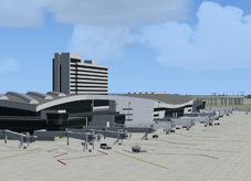 Each 3D model is unique and painstakingly textured to accurately represent the real-life structure. Special attention was paid to the new international terminal (D) and its complex curved lines and surfaces. Each boarding gate is fitted with a unique jetway model designed to represent the real equipment. Each jetway is also numbered and labeled according to its real life user. Finally, each terminal is populated with a significant number of optional static vehicles customized to match the airline using of each gate. Finally, custom-made models for all relevant air traffic control, cargo and maintenance facilities are included. In most cases, maintenance hangars are usable. Due to the intrinsic complexity of the scenery, we included only a small fraction of the total number of non-essential buildings within the airport boundary.