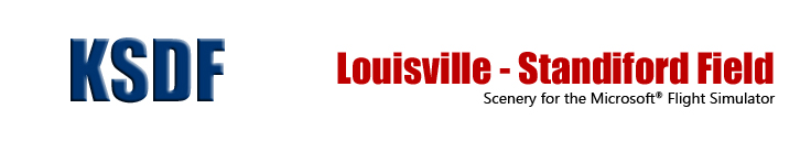 BluePrint Simulations’ KSDF scenery depicts the Louisville Standiford Field as it exists today. It also includes a finished version of the UPS™ sorting facility currently under construction. All other major buildings within the airport boundaries have been portrayed accurately, including the terminal building with concourses A and B, the remains of the old concourse, the parking structure, and the control tower as well as the Air National Guard and general aviation facilities. Special attention has been paid to the precise location of gates and parking spot locations. The field layout has been modified to accurately represent the real airport with three runways, taxiways (including taxiway A currently under construction), aprons and signage.